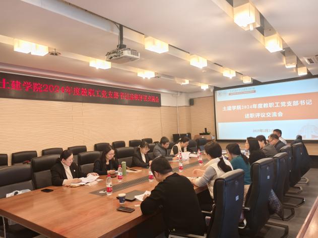 2025年2月21日上午,土建学院召开2024年度教职工党支部书记述职评议考核会议。土建学院特邀组织员沈永清出席会议,学院党委副书记陈博、学工办主任秦乐乐、全体教职工党支部书记及支委代表和专职组织员参加会议。会议由学院党委书记白雁主持。