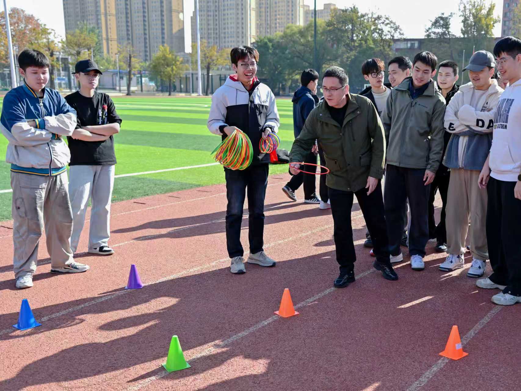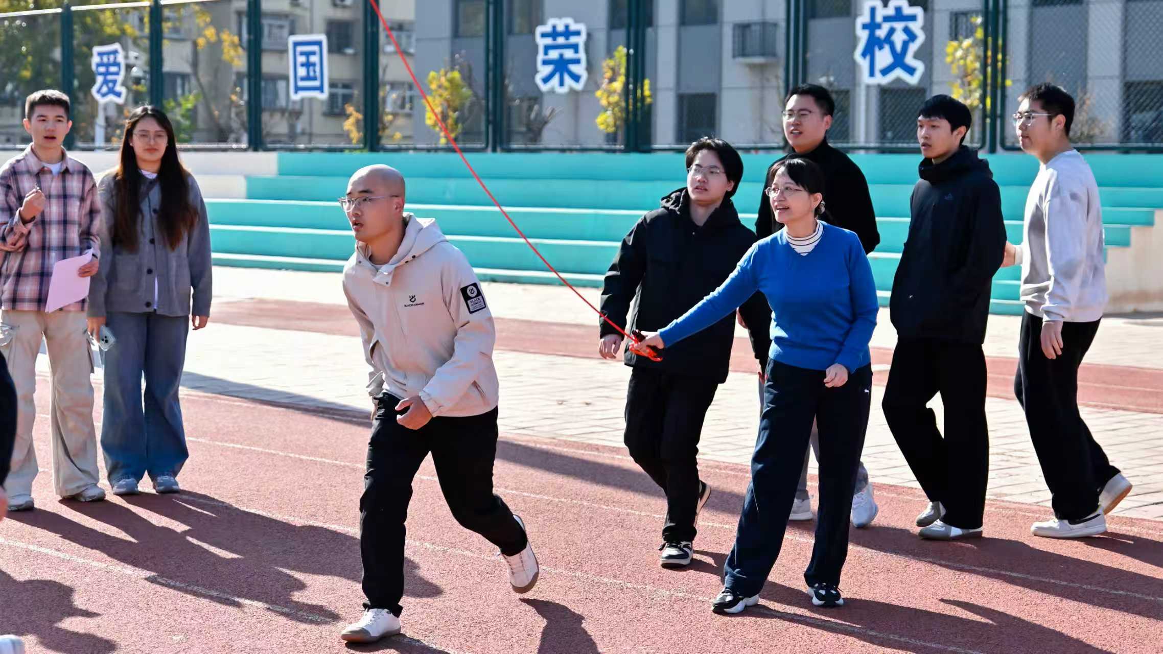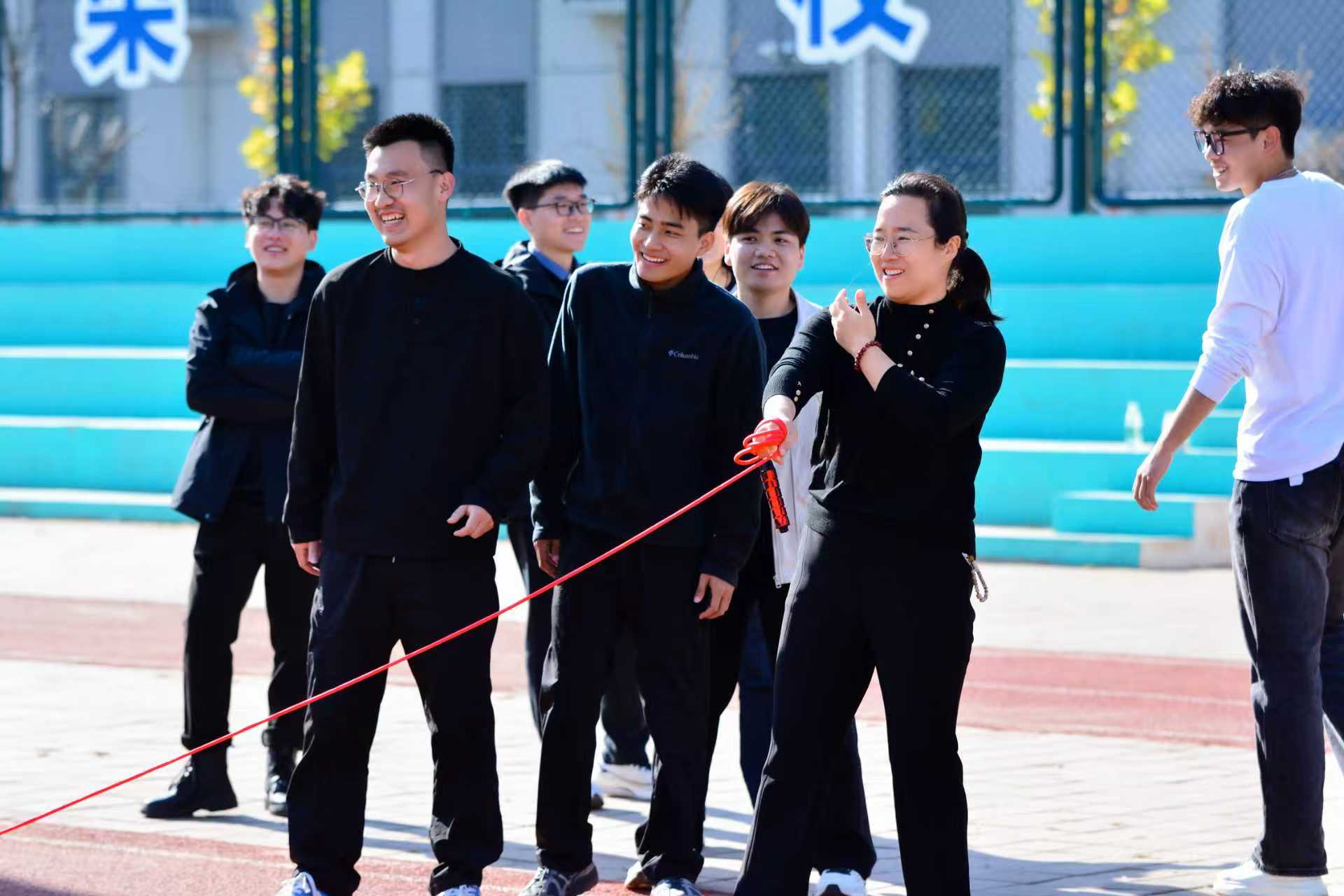 活动以“导学领航传薪火,同心筑梦绘蓝图”为主题,来自三个学院的9支研究生导学团队,共计90余名师生分别参加了跳大绳、套圈党建答题以及团体拔河三项趣味活动。套圈现场,参赛队员专注凝神,精准把控角度与力度,沉稳出手角逐目标;跳大绳环节,队员们身姿矫健、配合默契,在绳影翻飞间全力冲刺佳绩;团体拔河赛场更是气氛热烈,各队伍凝心聚力、劲往一处使,欢笑声与加油声交织回荡,充分展现了导学团队的协作精神与奋进姿态。