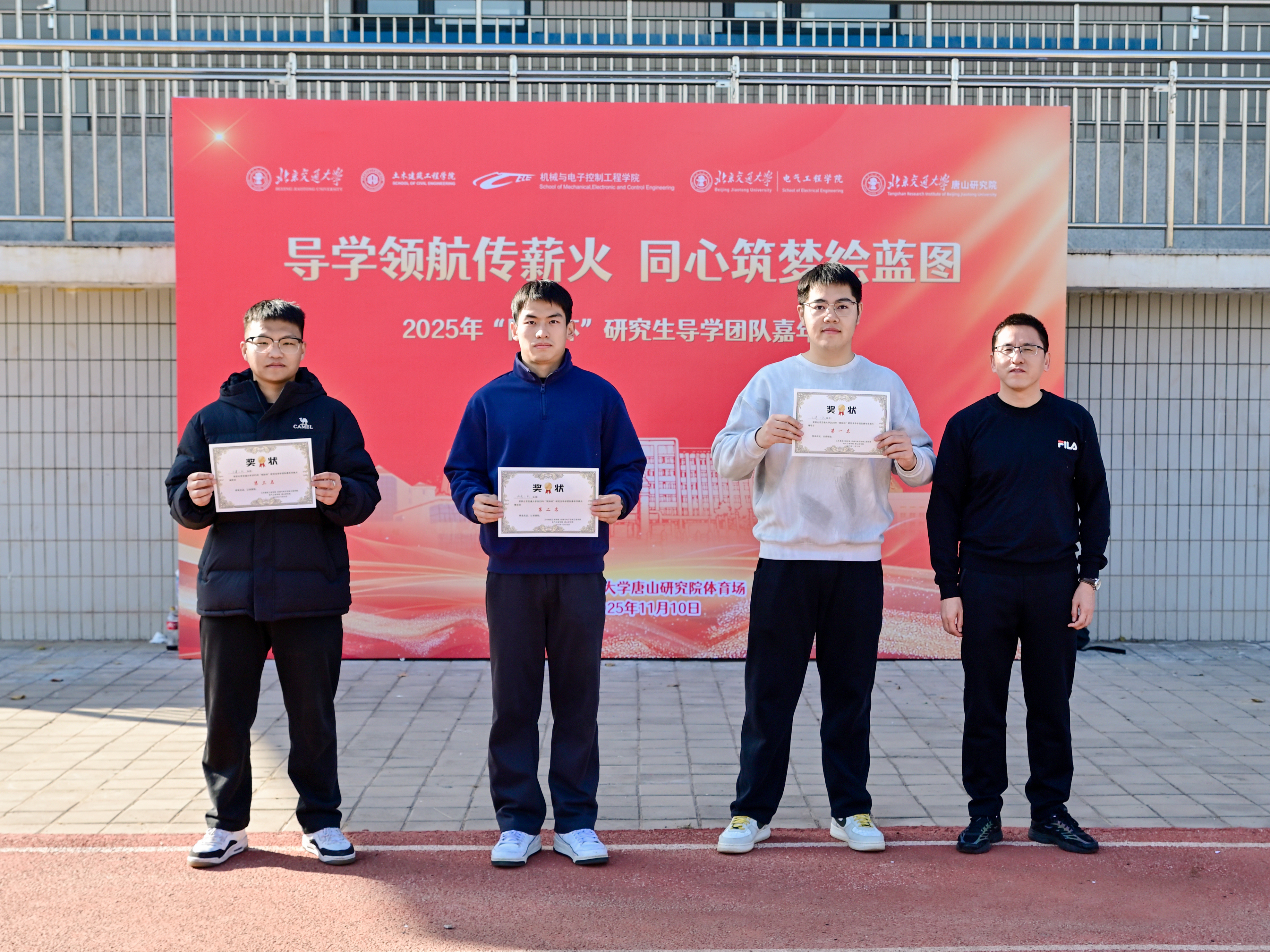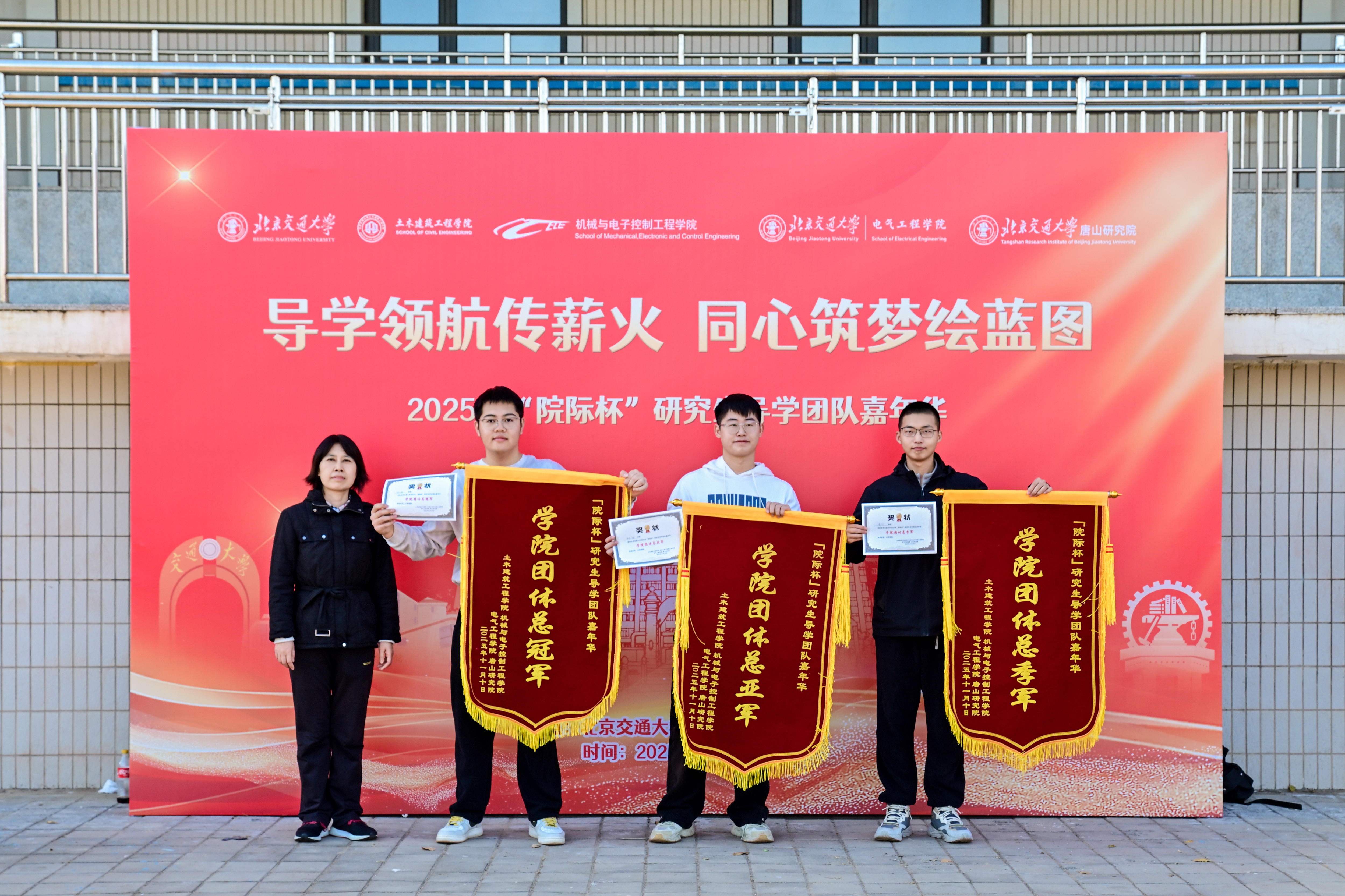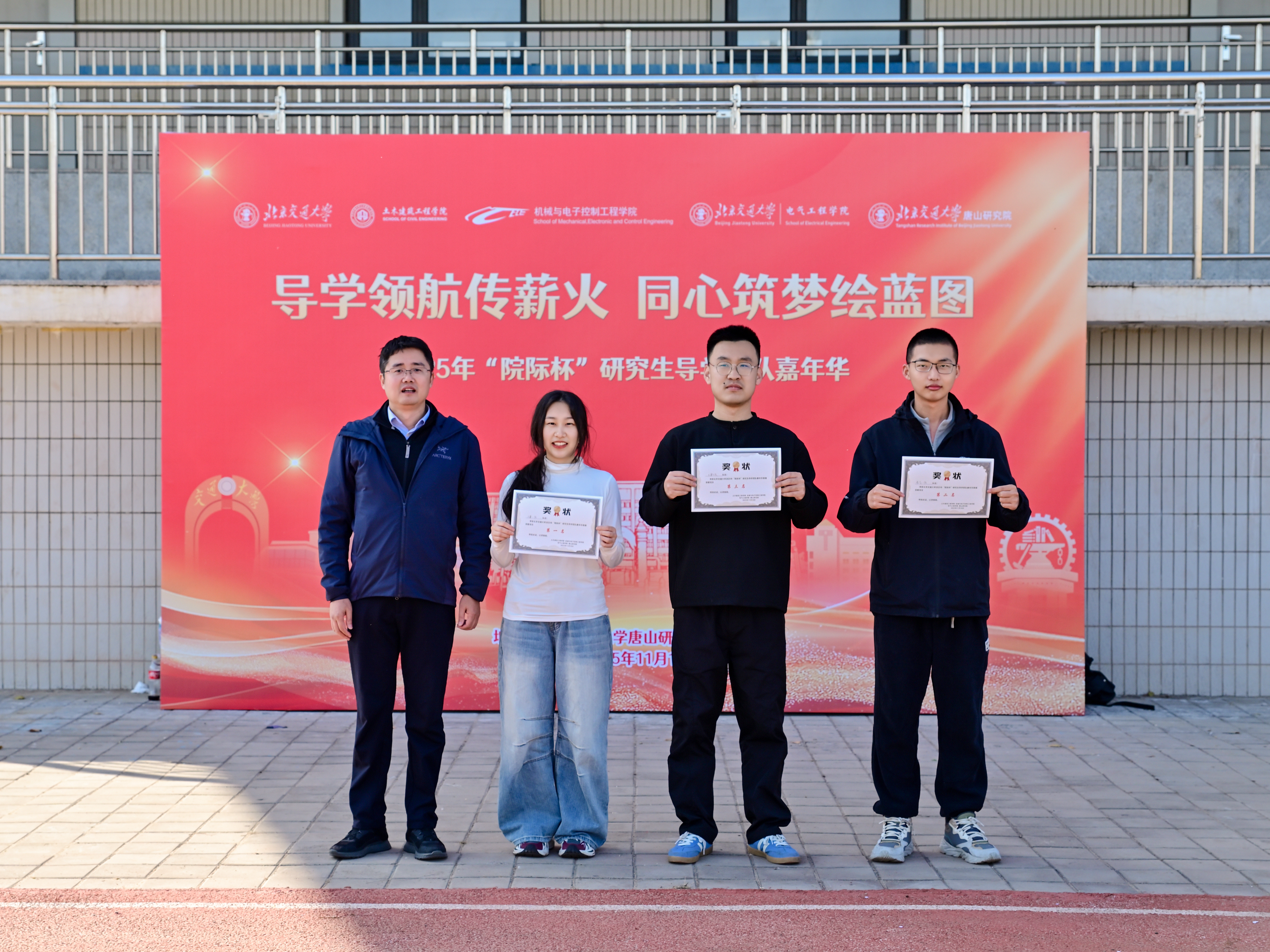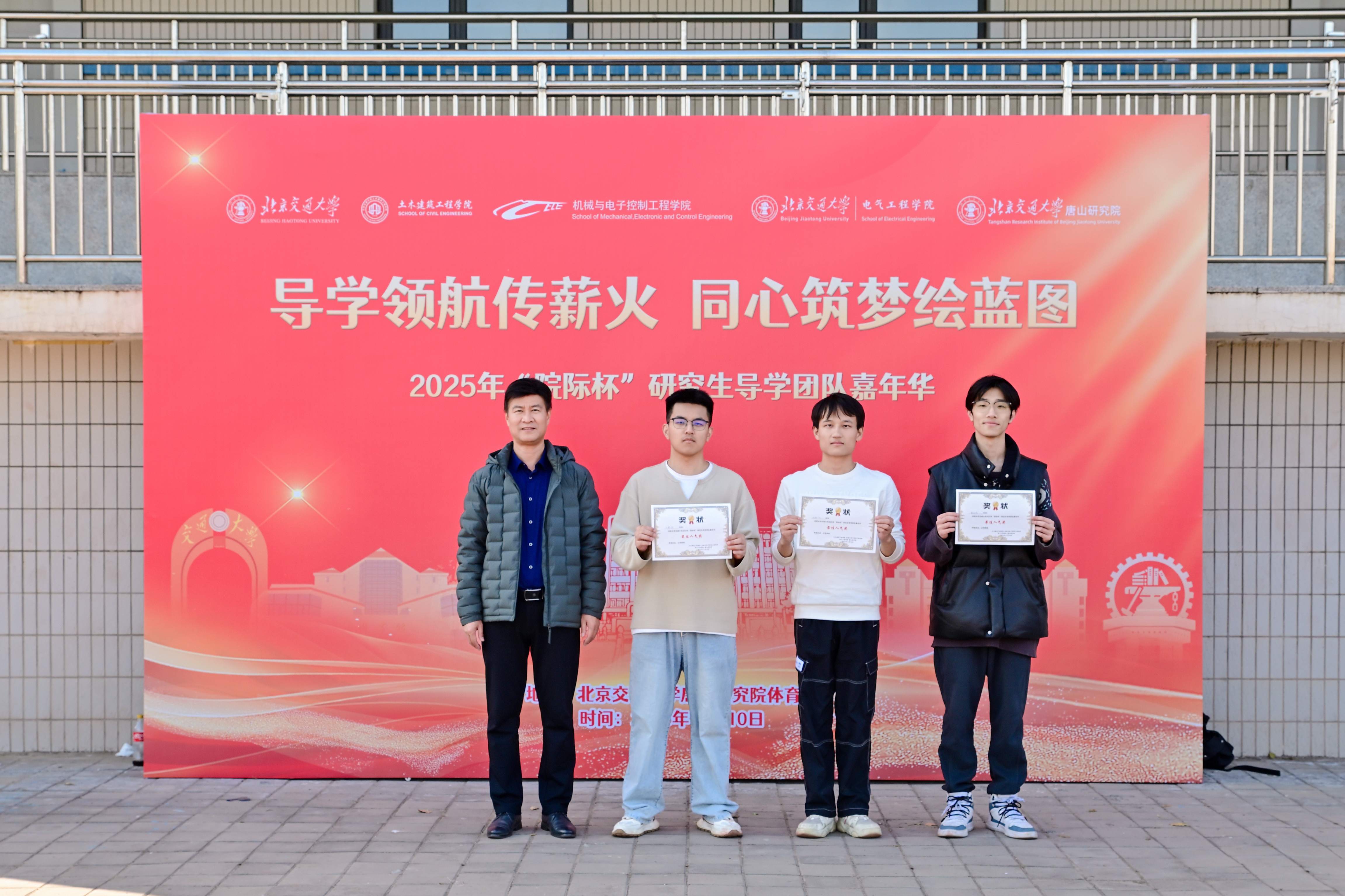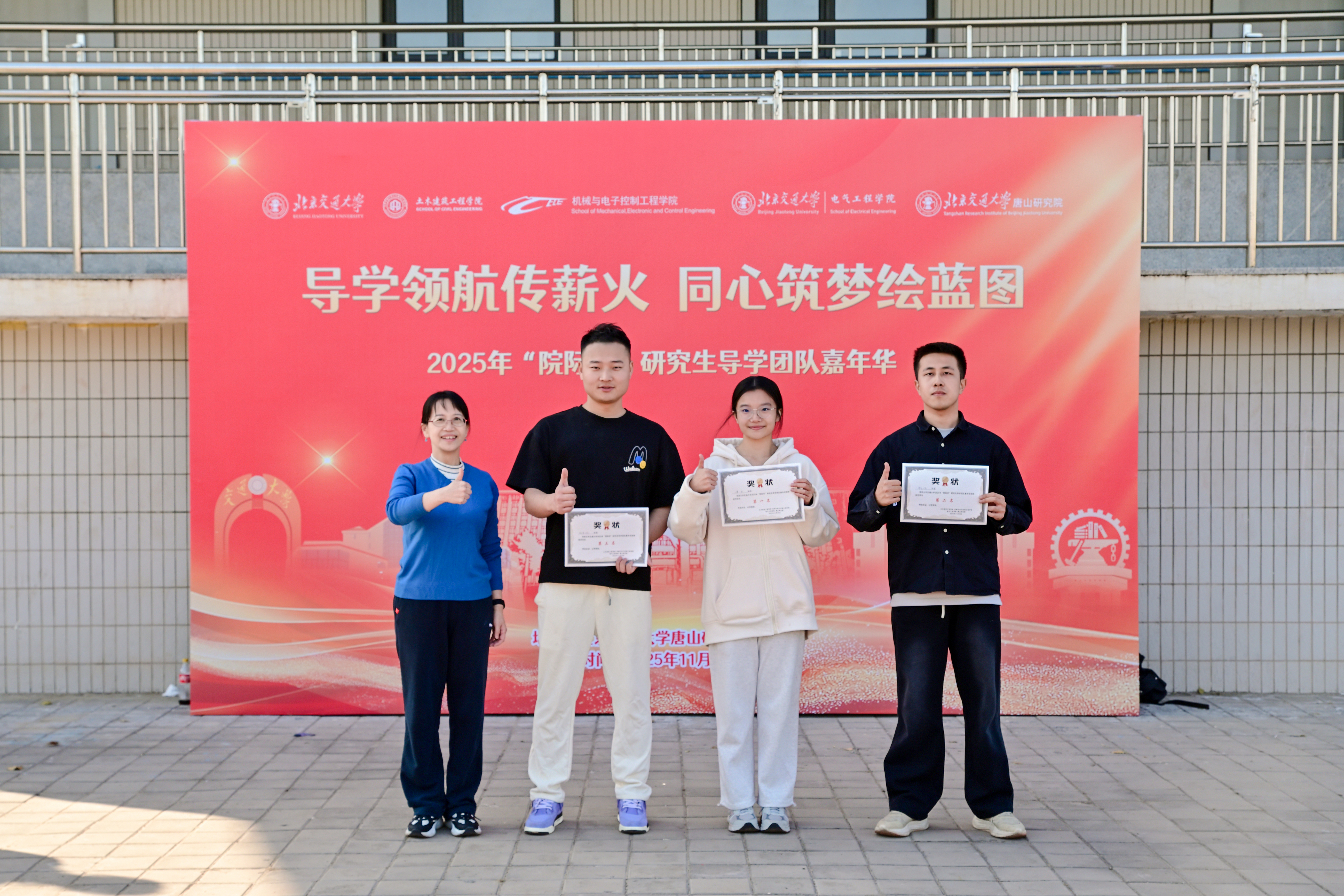 为深入学习贯彻党的二十届四中全会精神,进一步深化协同育人,发挥导学互动的思想政治教育功能,土建学院、机电学院、电气学院、唐山研究院于2025年11月10日在唐山研究院共同举办了“院际杯”研究生红色导学嘉年华活动。土建学院党委书记白雁、机电学院党委副书记副院长蒋增强、电气学院党委副书记副院长王小君、唐山研究院副院长王锦、副院长董敬祝出席活动。