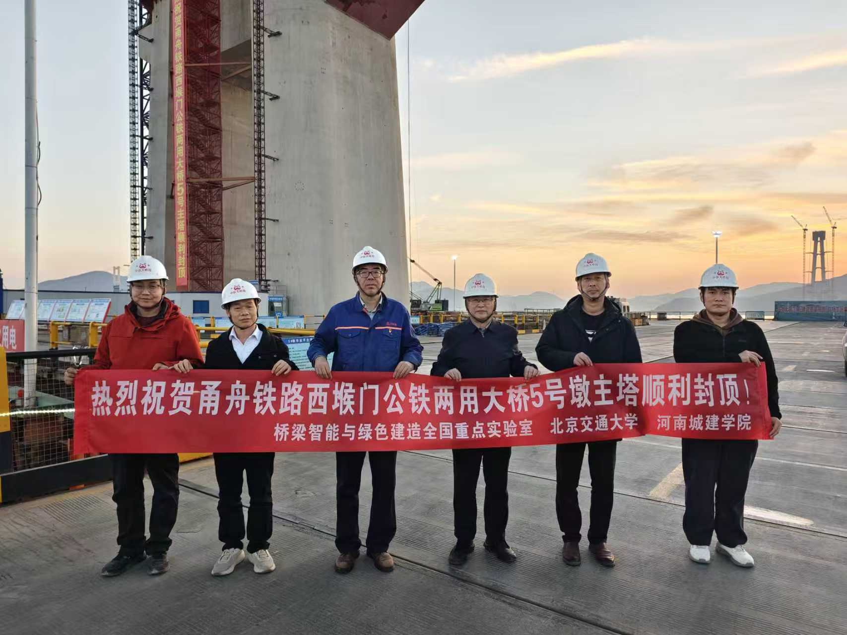 2025年12月30日,甬舟铁路西堠门公铁两用大桥首座主塔顺利封顶,央视等多家媒体进行了直播报道。该主塔高294米,刷新了世界海中桥梁主塔高度的纪录,成为世界第一高海上桥塔。我院安明喆教授团队依托“复杂海洋环境下超千米级斜拉悬索协作体系公铁两用桥建造技术及装备研究”项目,与中铁大桥局共同主持完成了海洋环境下超高混凝土主塔施工技术研究,系统性解决了海洋环境下高耐久混凝土制备、海上超高距离泵送与高空养护、强约束条件下混凝土抗裂等技术难题,为超级工程建设提供了关键技术支撑,充分彰显了我院科研服务国家重大战略需求的科研实力与责任担当,也是继世界首座跨度超千米的公铁两用沪苏通长江大桥桥塔建造提供科研支持后,团队第二次为世界级桥梁的建设赋能。