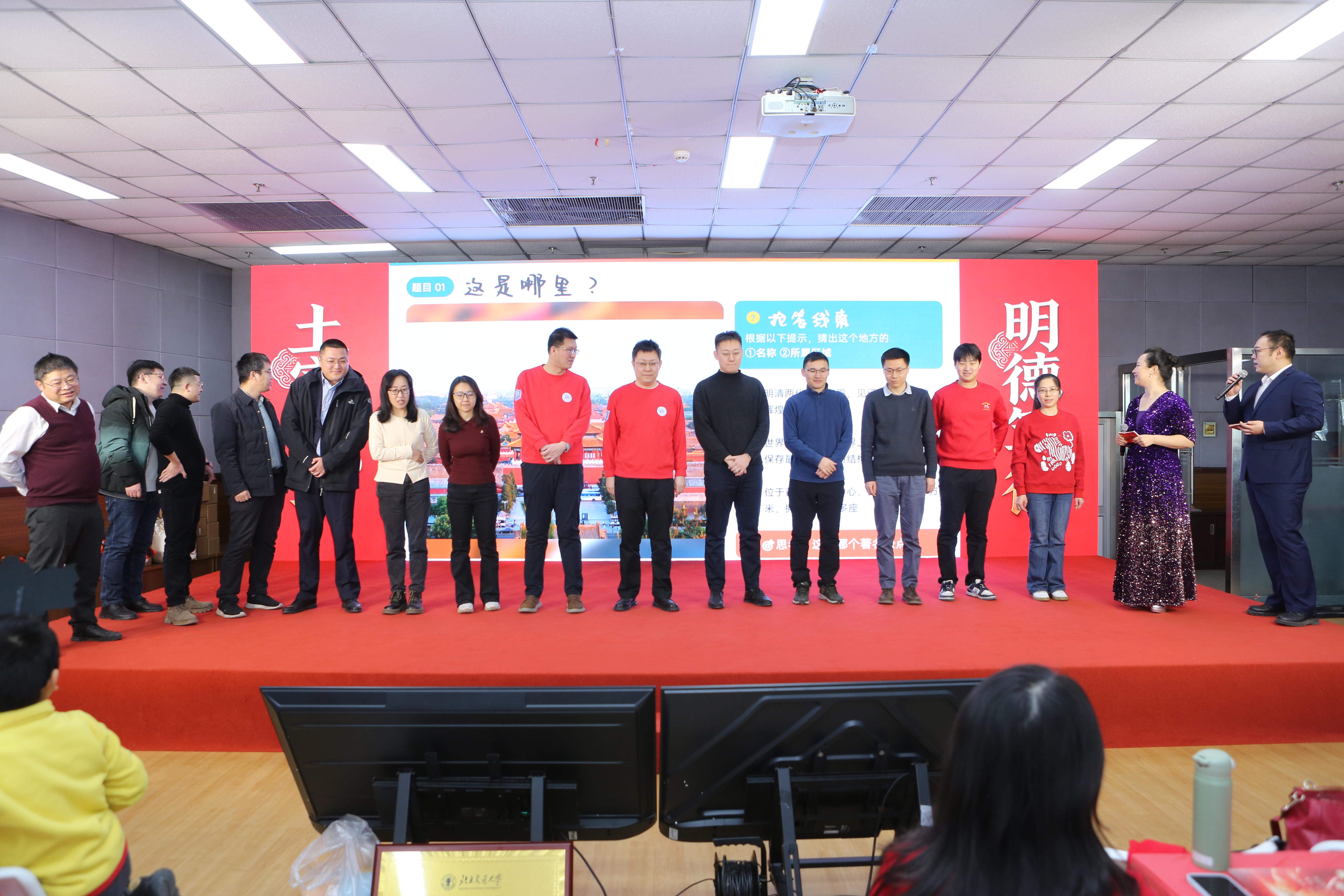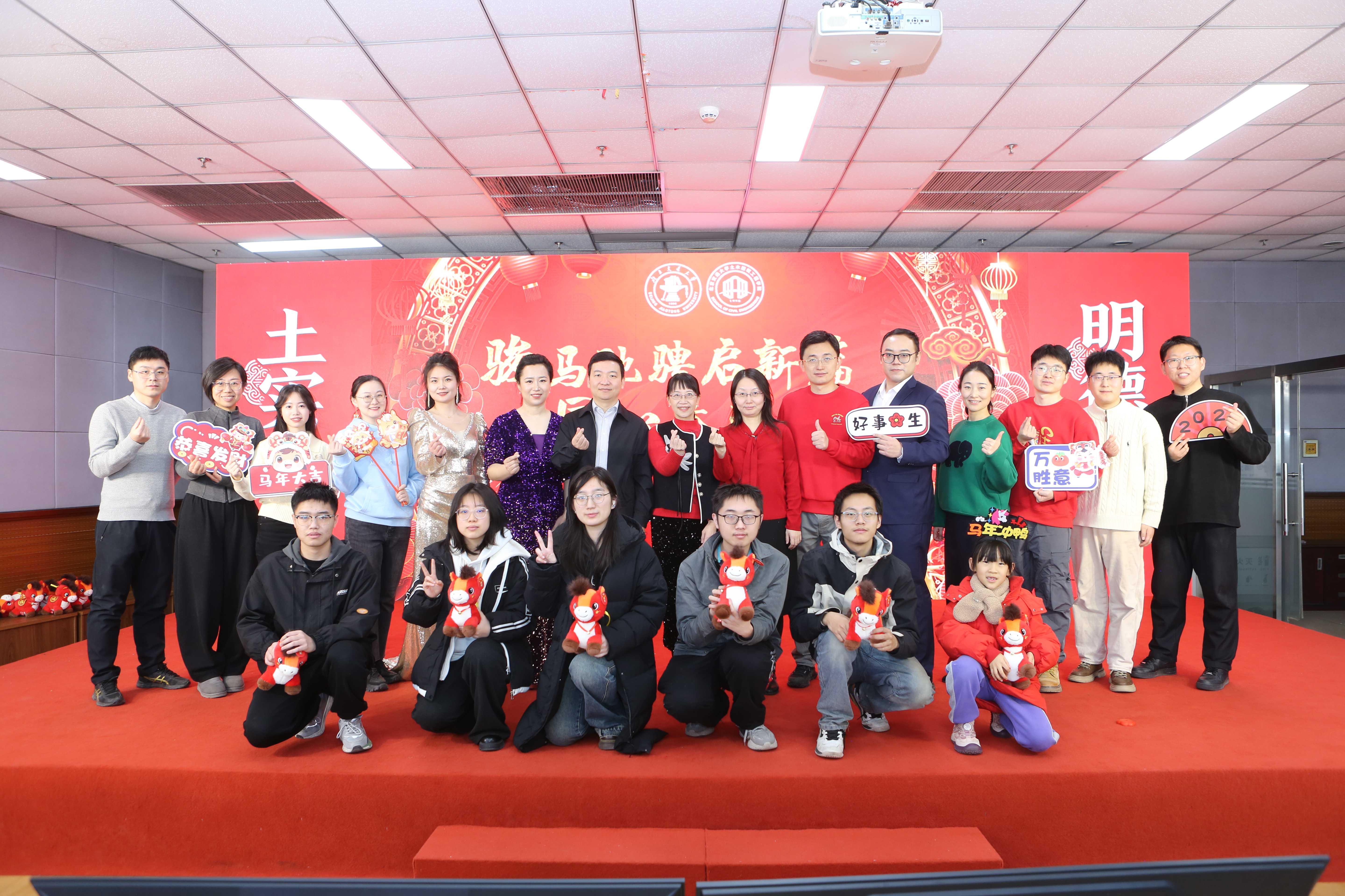 学院对过去一年在各项工作中涌现出的先进集体、优秀教师、先进工作者及在科研、教学竞赛中取得突出成绩的老师进行了集中表彰,树立了学习榜样,弘扬了实干精神。紧随其后的“骏马送福”环节,特别为即将迎来本命年的师生送上了学院精心准备的吉祥物与祝福,寄寓骏马奔腾、前程似锦。互动游戏“家乡至味猜猜看”趣味横生,通过特色美食拉近了彼此距离。新入职教师则以一曲活力满满的《恭喜发财》,展现了新生力量的朝气与融入集体的热情。在温馨感人的“耕耘·传承”值年教师祝福环节,学院向达到特定教龄周年的教师表达了崇高敬意与感谢,彰显了尊师重教、薪火相传的学院传统。
