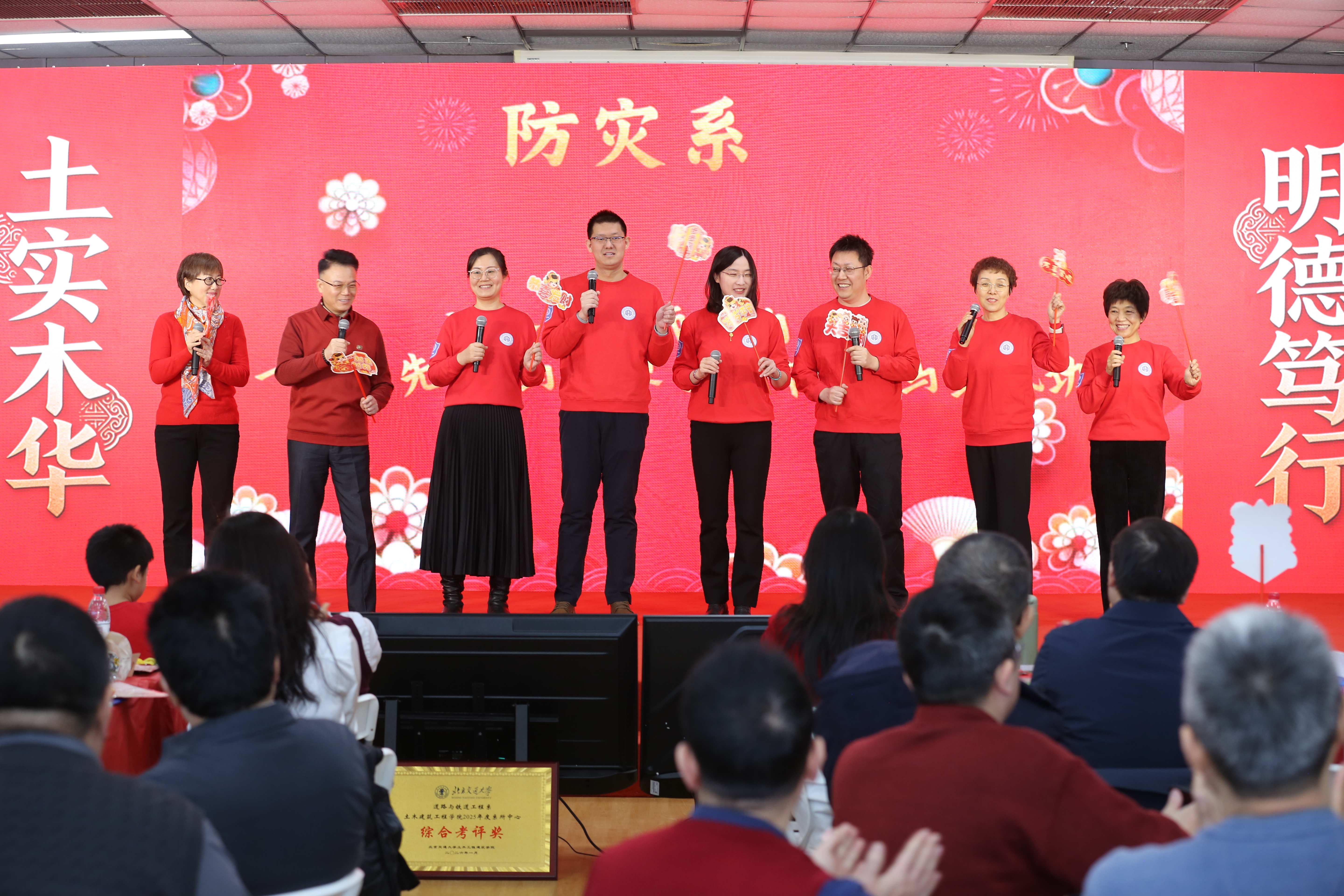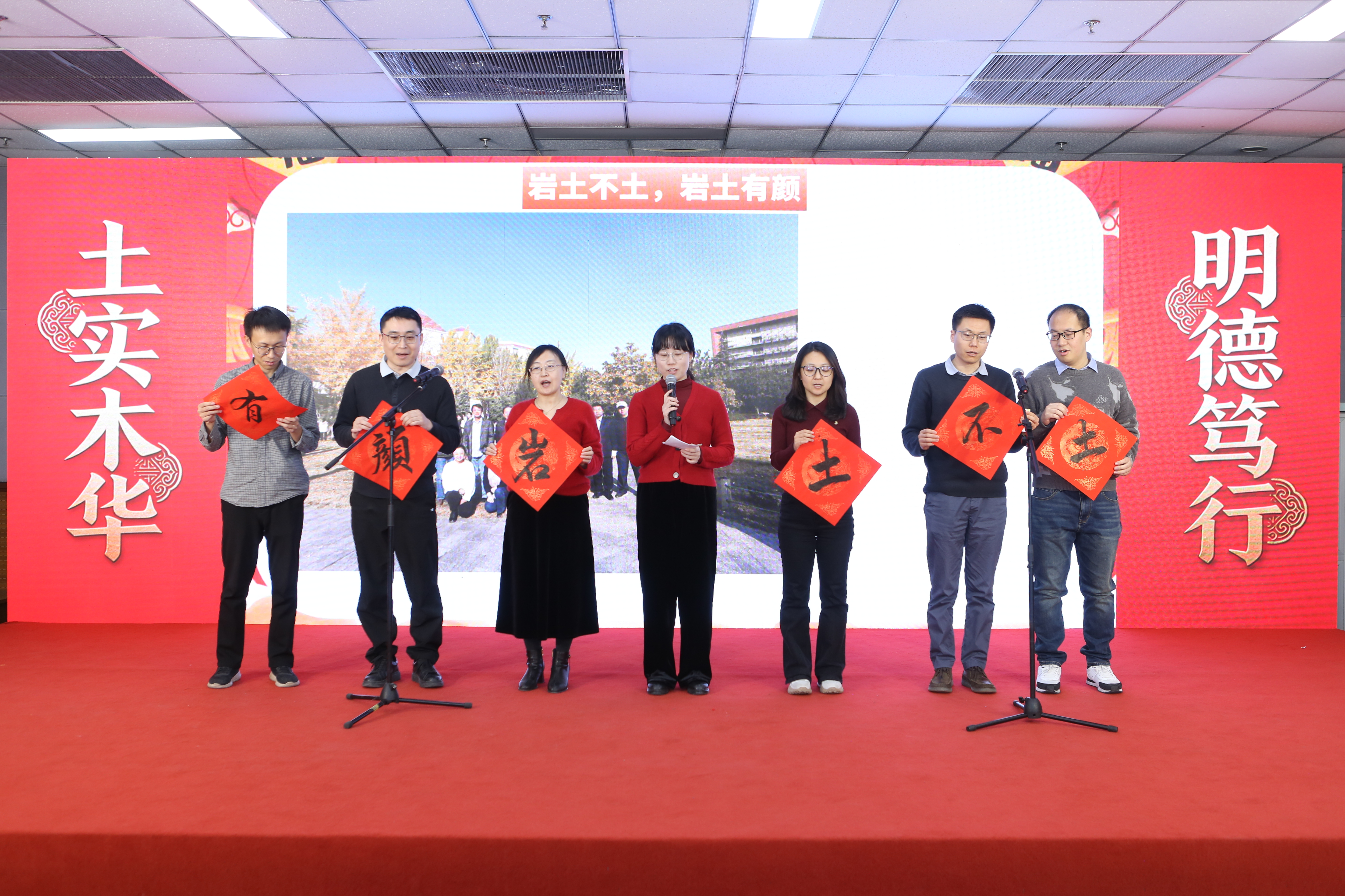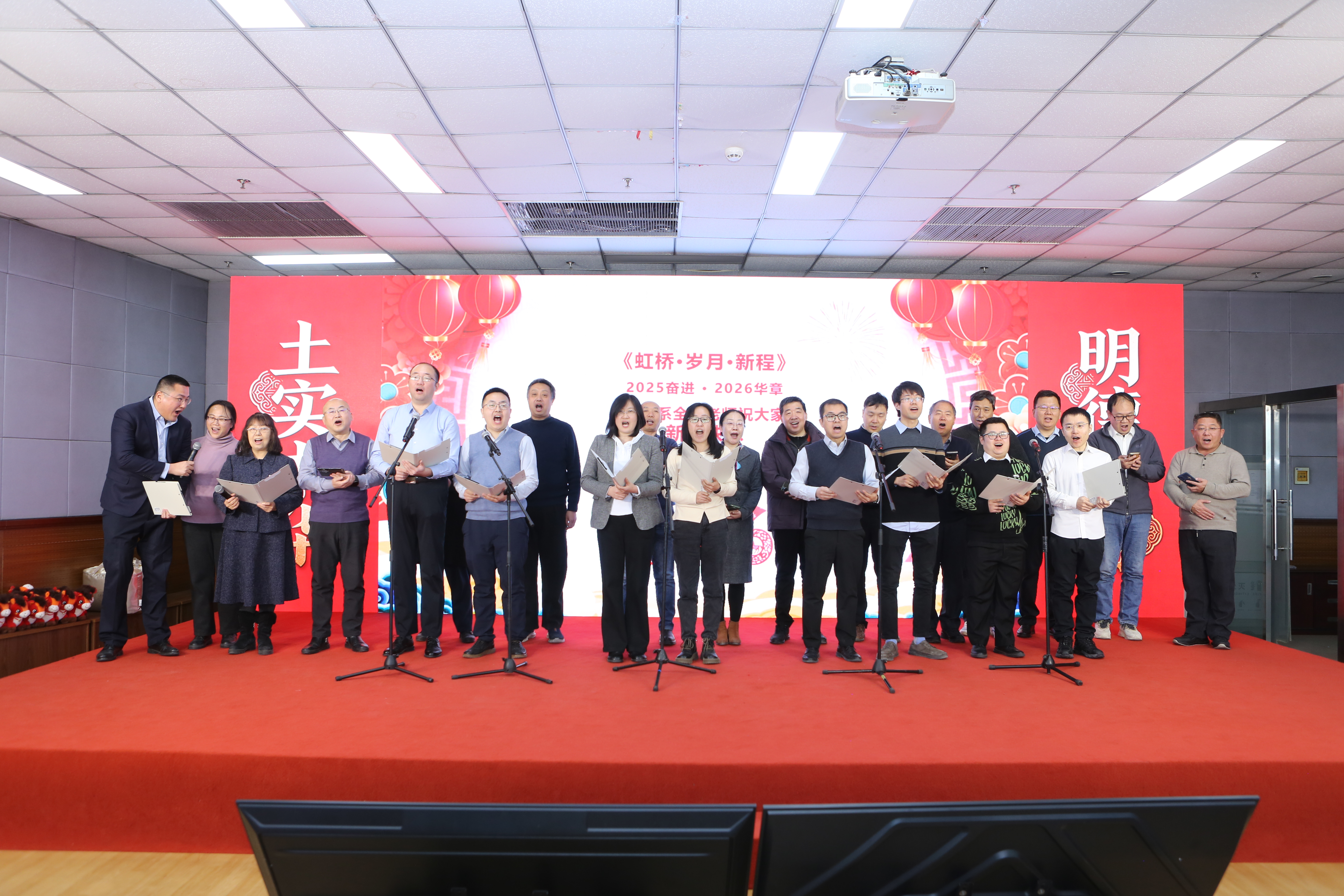 桥梁工程系的诗朗诵《虹桥·岁月·新程》,将专业情怀融入诗意表达,抒发了土建人架设彩虹、贯通岁月的豪情。岩土工程系带来的合唱《这世界那么多人》,歌声温暖动人,感恩相遇与并肩奋斗;地下工程系的趣味配音秀《山河有声,地下无声》,结合专业特色,创意十足,展现了别样的专业魅力。最后实验中心全体教师以一首紧密结合工作实际、歌词寓教于乐的《实验安全小美满》主题合唱压轴登场,在轻松愉快的旋律中强化了安全意识,为整场联欢会画上了圆满而富有深意的句号。